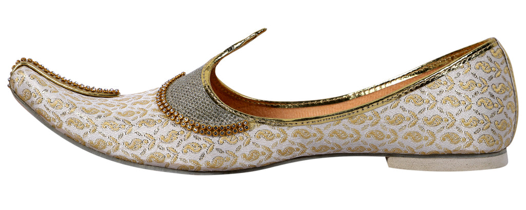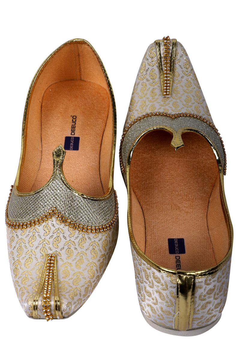 DEEUCO Men's Traditional Golden and Cream Wedding and Sherwani Jutti,Mojari