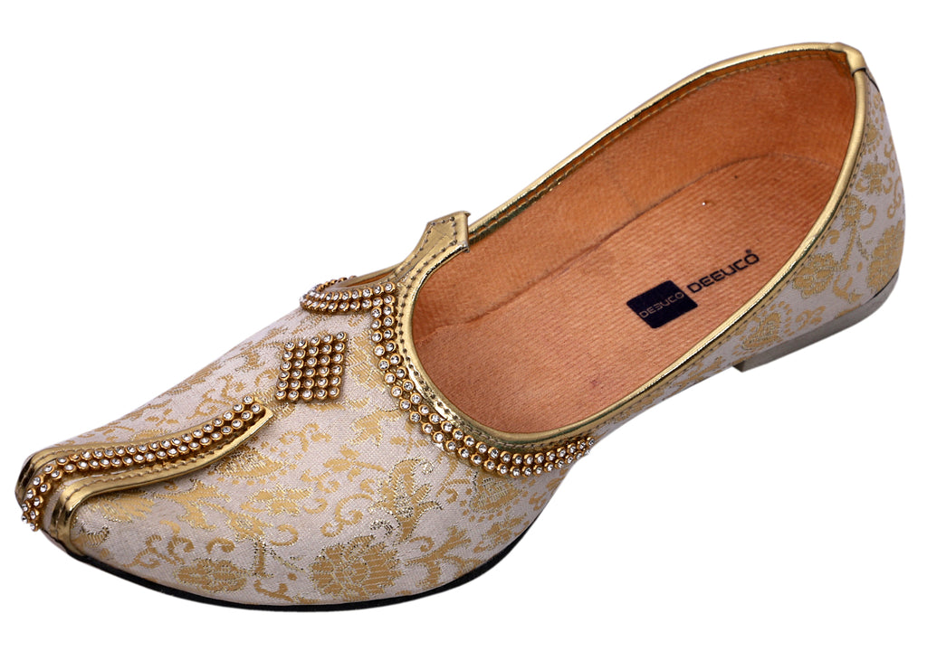 DEEUCO Men's Ethnic Cream and Golden Wedding and Sherwani Jutti, Mojari