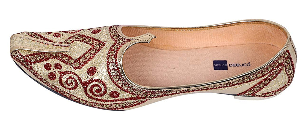 DEEUCO Men's Ethnic Juti/Mojari for Wedding and Party Occasions (Cream and Red)