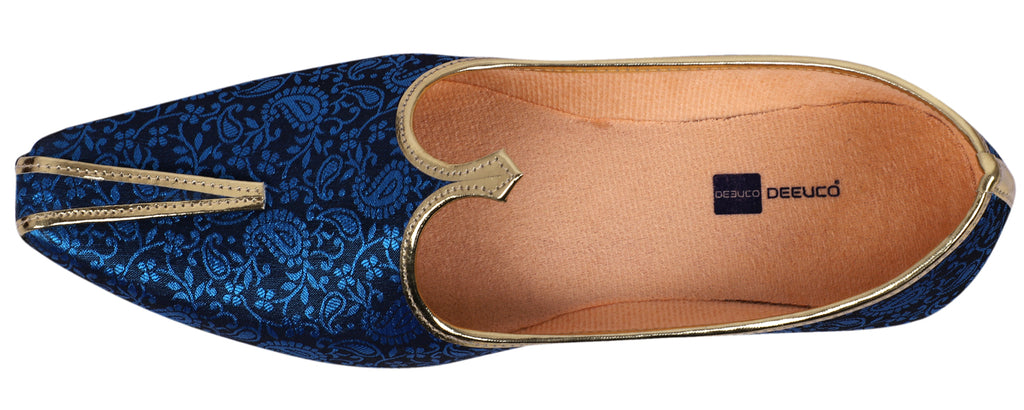 DEEUCO Men's Ethnic Navy Blue Wedding and Sherwani Jutti, Mojari