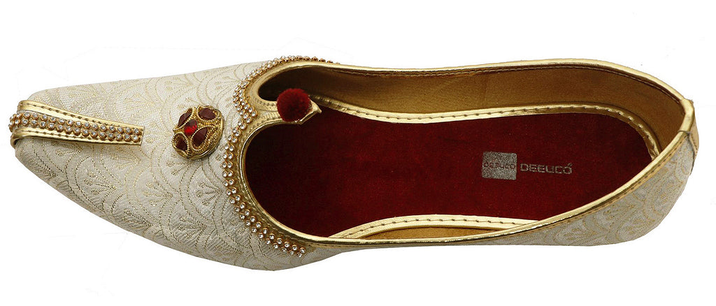 DEEUCO Men's Ethnic Premium Designer Cream Wedding and Sherwani Jutti, Mojari