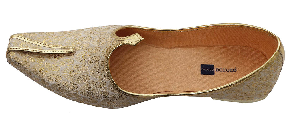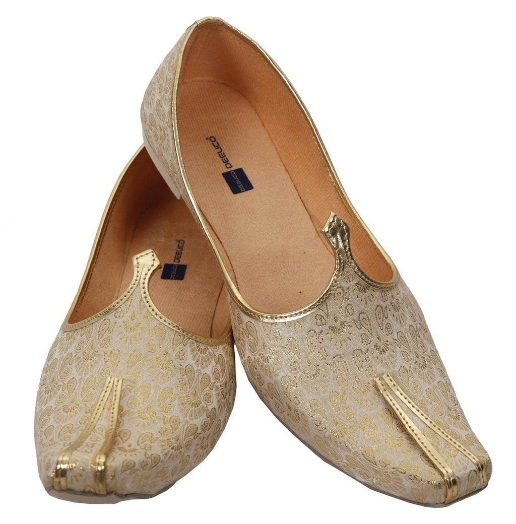 DEEUCO Men's Ethnic Premiun fine Fabric Cream Wedding and Sherwani Jutti,Mojari