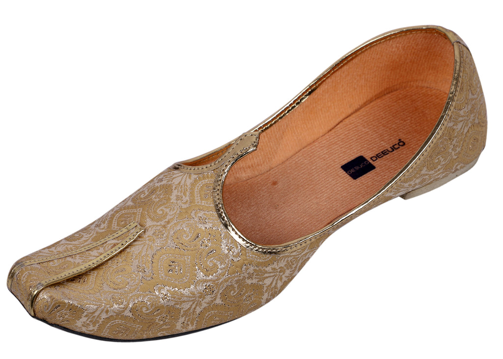DEEUCO Men's Ethnic Royal Golden Wedding and Sherwani Jutti, Mojari