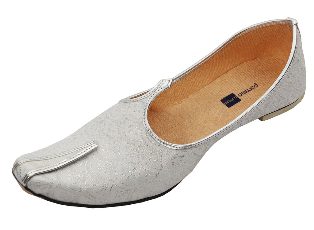 DEEUCO Men's Ethnic Silver Wedding and Sherwani Jutti,Mojari