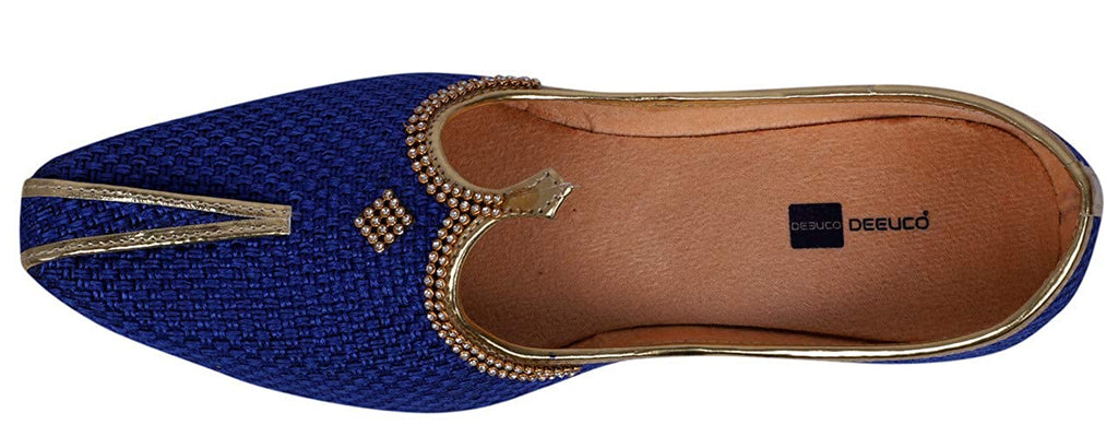 DEEUCO Men's Traditional Blue Wedding and Sherwani Jutti,Mojari