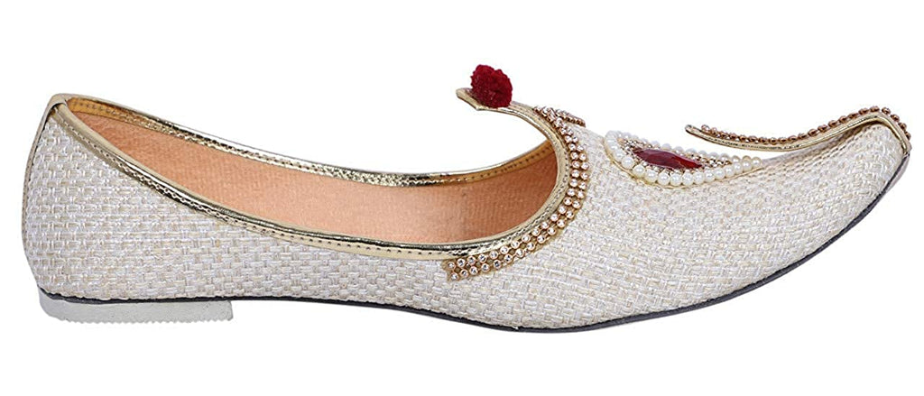 DEEUCO Men's Traditional cream jute Wedding and Sherwani Jutti,Mojari