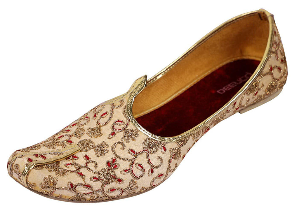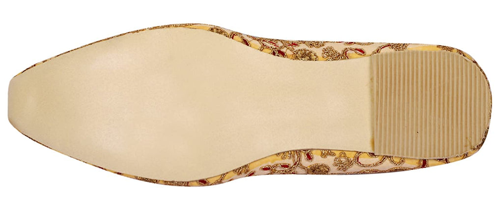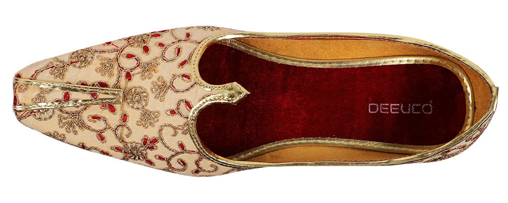 DEEUCO Men's Traditional Designer Embroidery Golden Wedding and Sherwani Jutti, Mojari