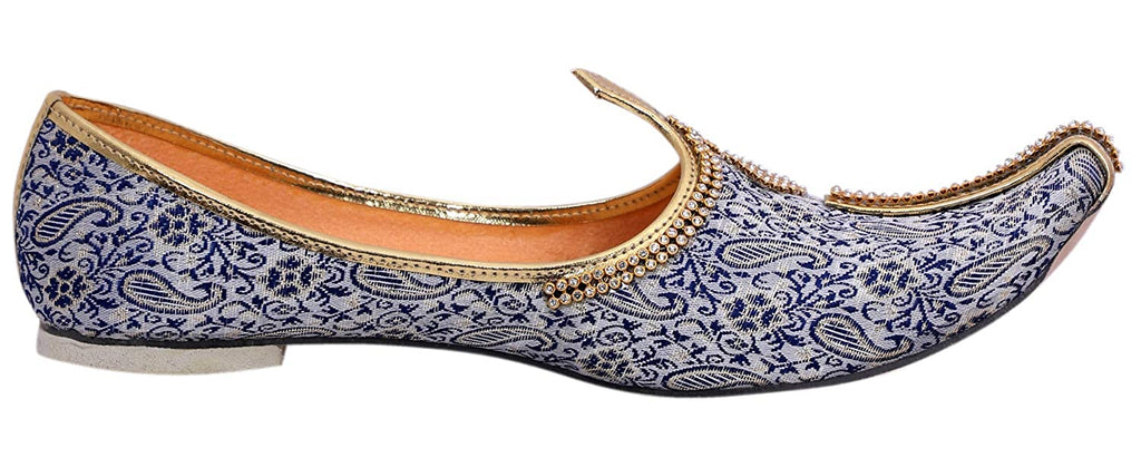 DEEUCO Men's Traditional Premium Blue Wedding and Sherwani Jutti (Mojari)