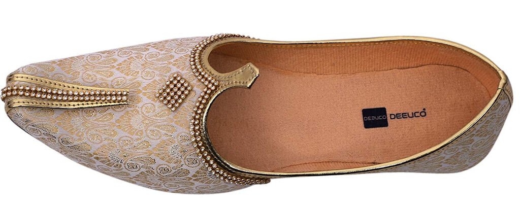 DEEUCO Men's Traditional Premium Cream and Golden Wedding and Sherwani Jutti (Mojari)