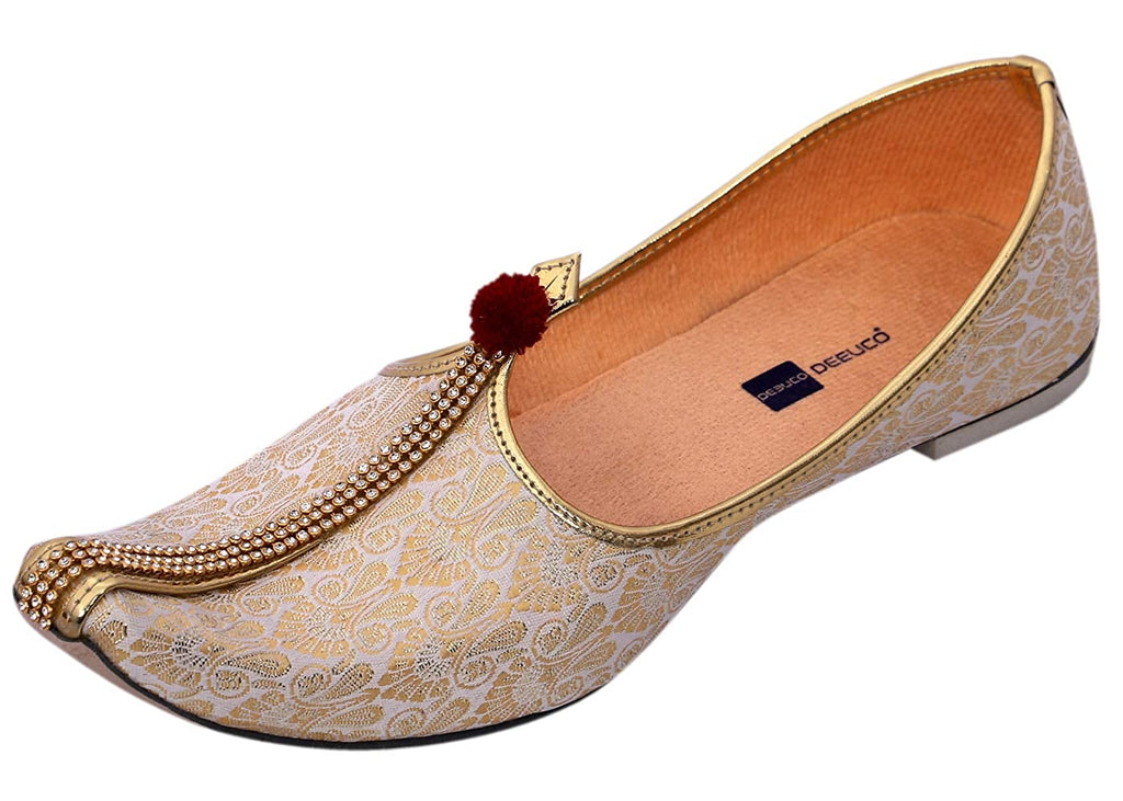 DEEUCO Men's Traditional Premium Cream and Golden Wedding and Sherwani Jutti (Mojari