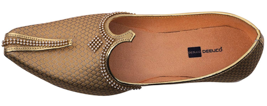 DEEUCO Men's Traditional Premium Golden Wedding and Sherwani Jutti (Mojari)