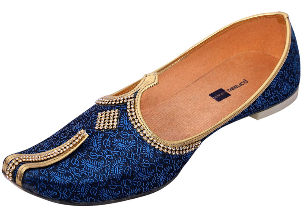 DEEUCO Men's Traditional Premium Light Blue Wedding and Sherwani Jutti (Mojari