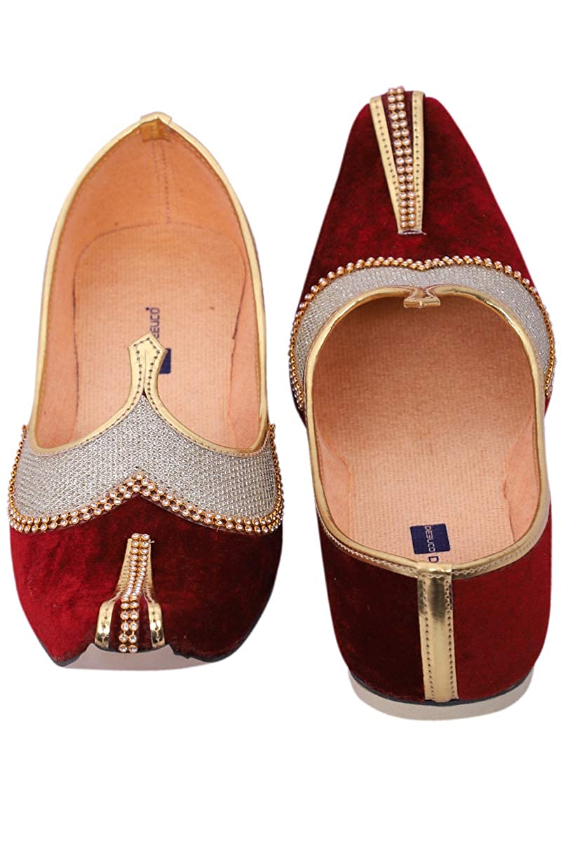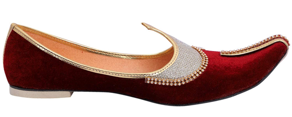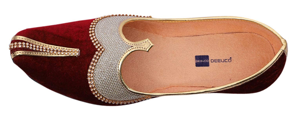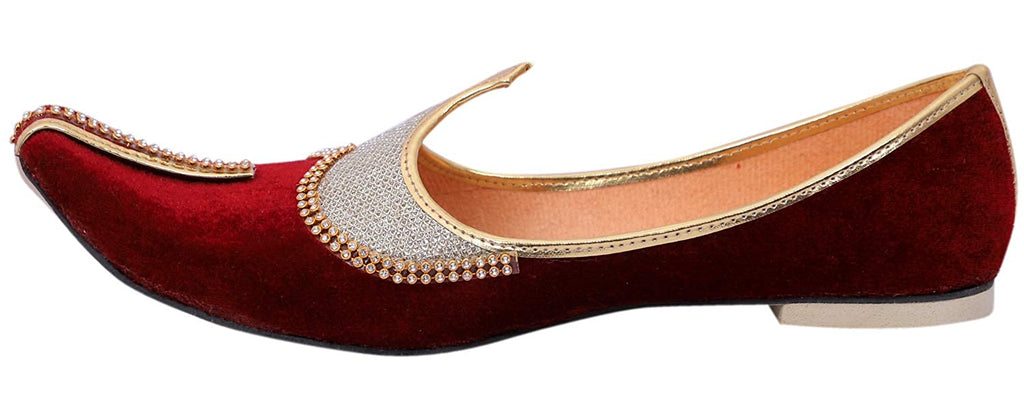 DEEUCO Men's Traditional Premium Maroon Velvet Wedding and Sherwani Jutti (Mojari)