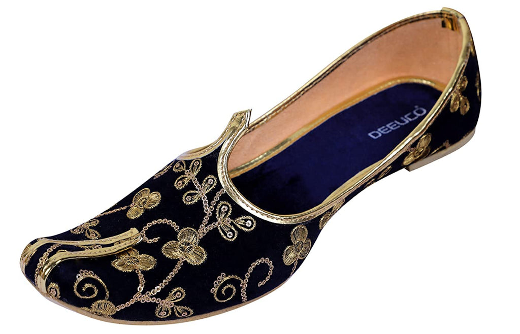 DEEUCO Men's Traditional Premium Navy Blue Embroider Wedding and Sherwani Jutti,Mojari