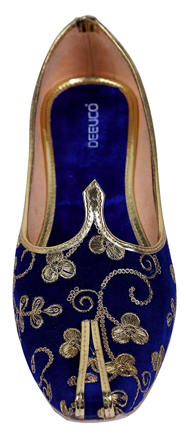 DEEUCO Men's Traditional Royal blue Premium Embroider Wedding and Sherwani Jutti,Mojari