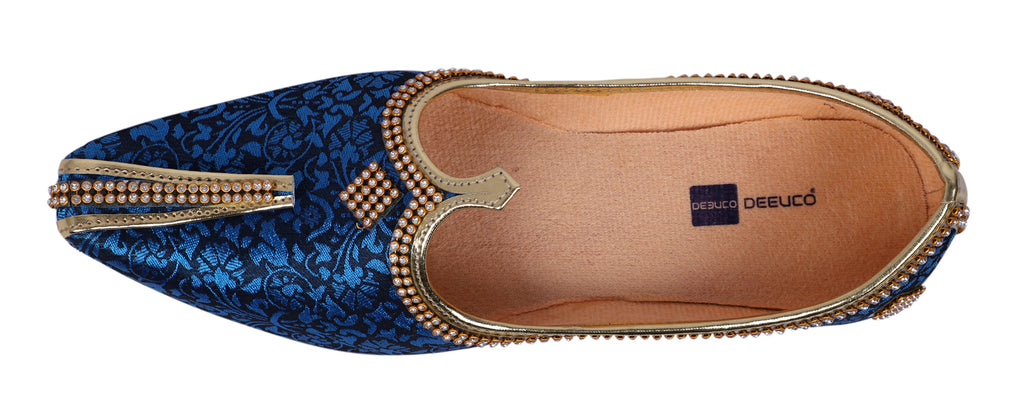 DEEUCO Men's Traditional Royal Blue Wedding and Sherwani Jutti,Mojari