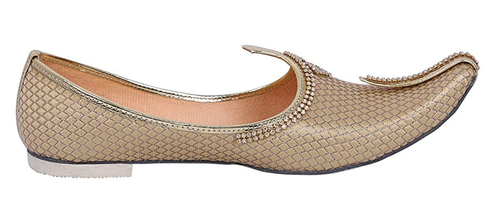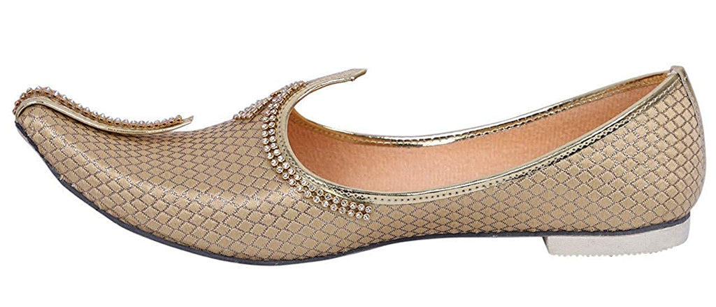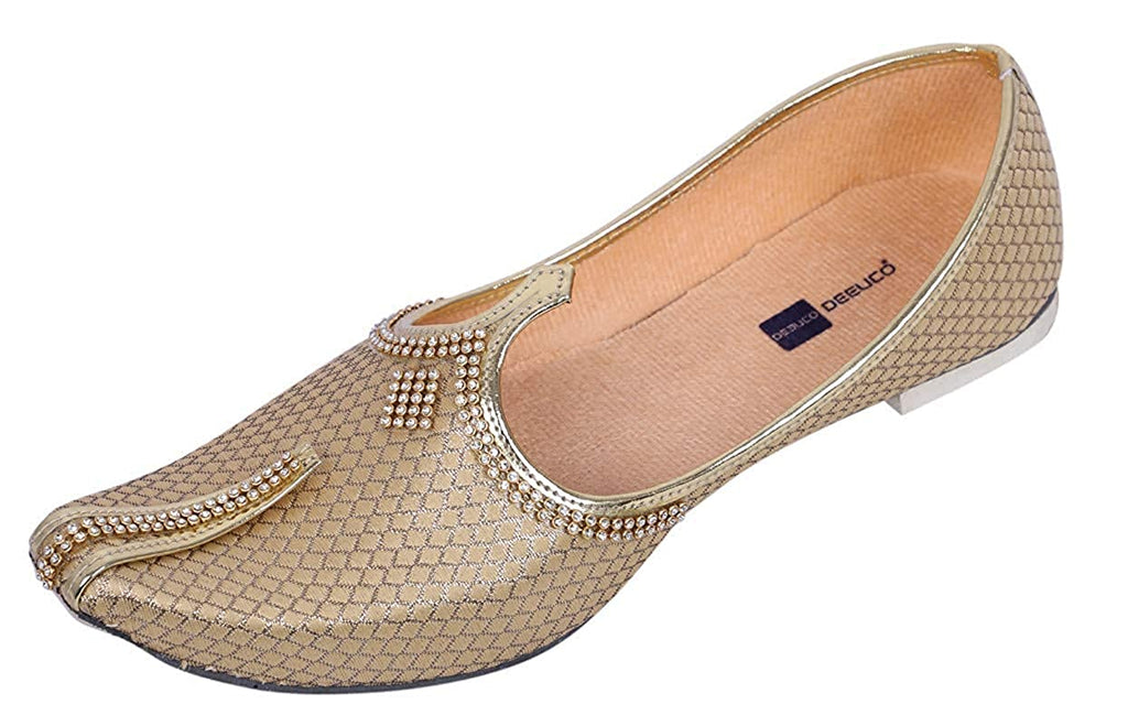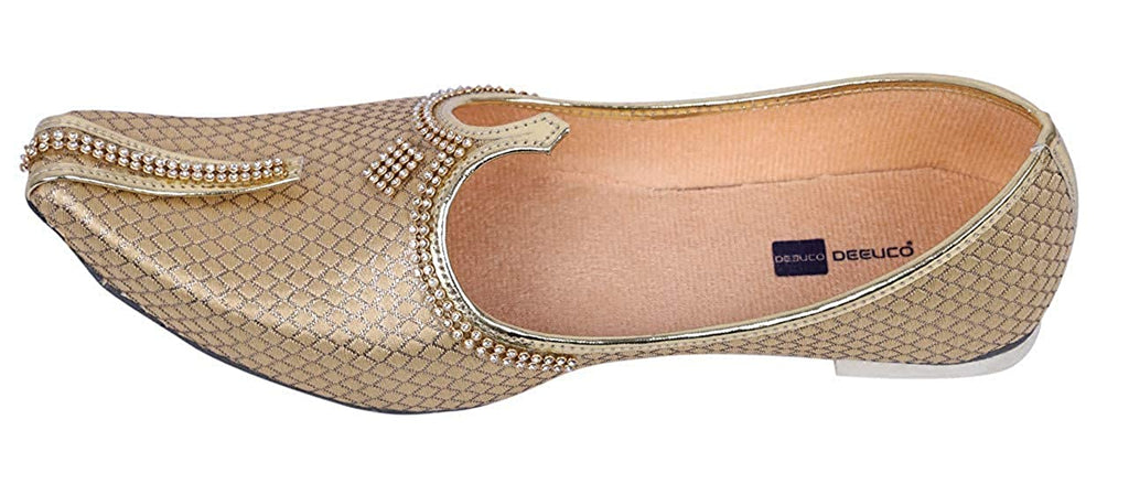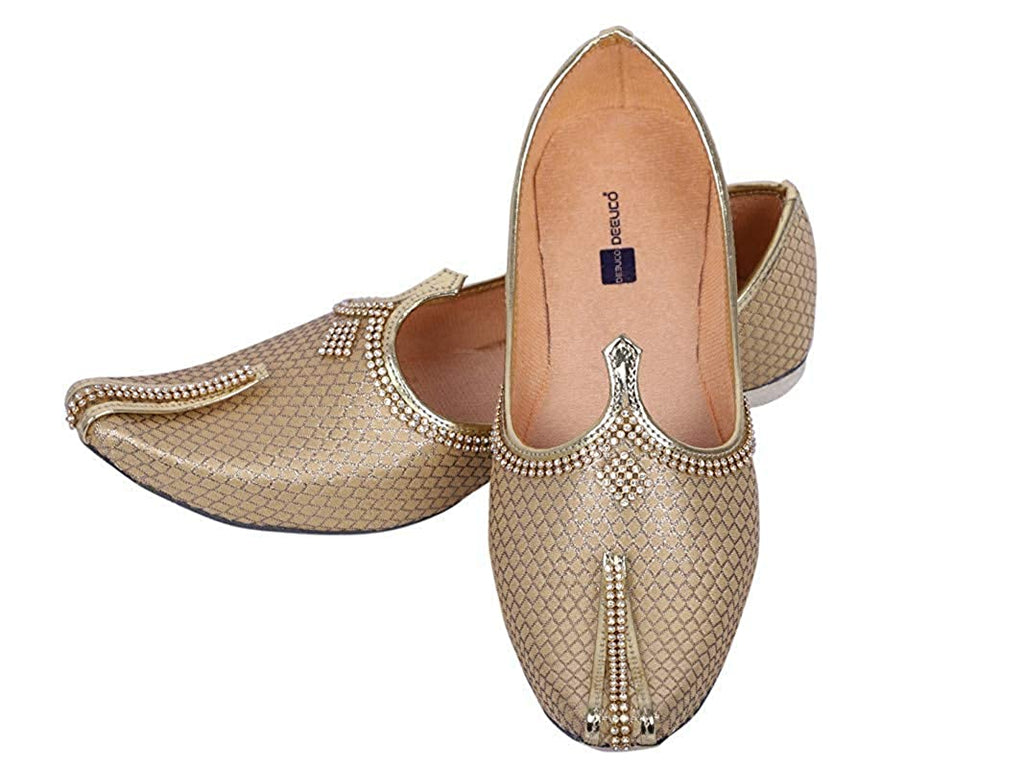 DEEUCO Men's Traditional Sherwani Mojari, Jutti for Wedding (Golden)