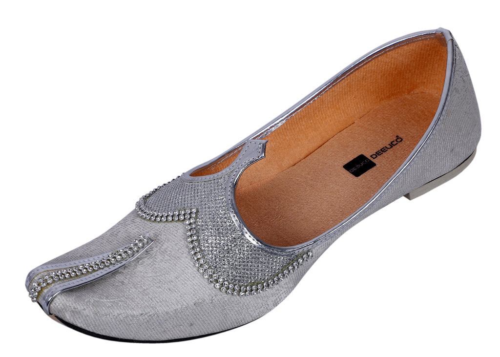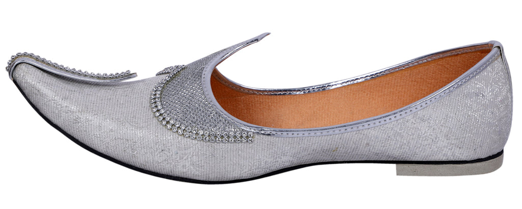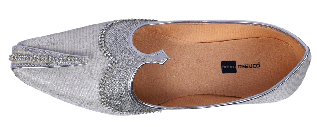 DEEUCO Men's Traditional Silver Wedding, Ethnic, Party and Sherwani Jutti,Mojari