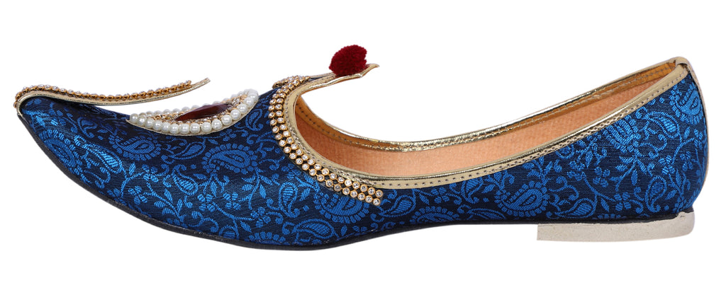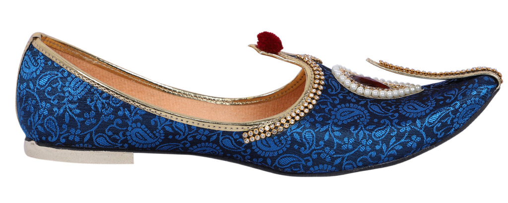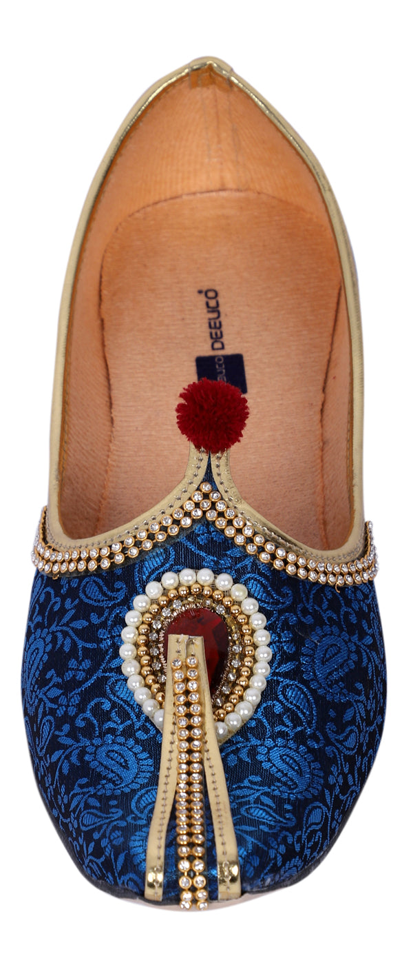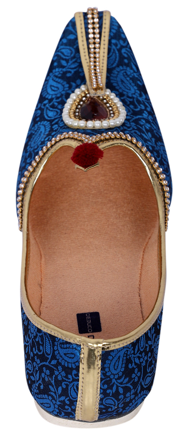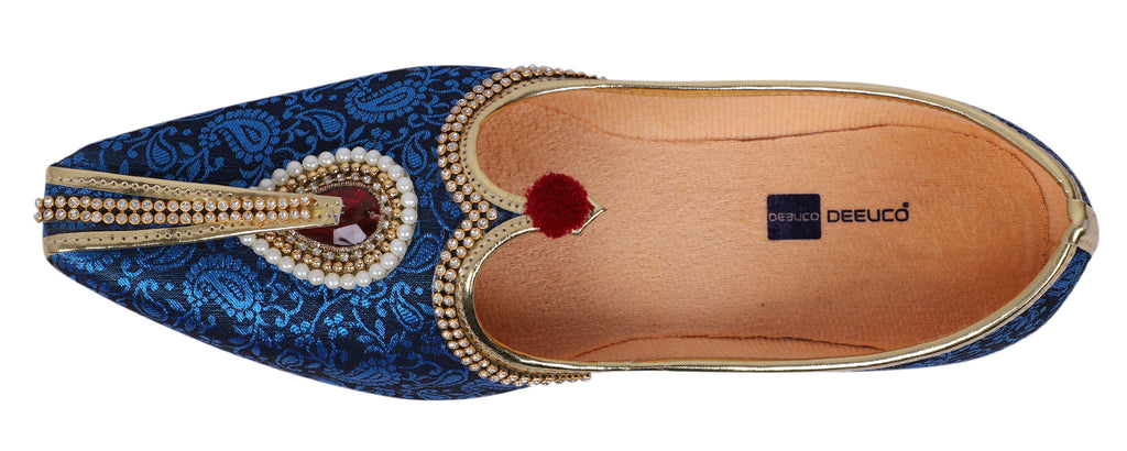 DEEUCO Men's Traditional Stone Studded Fabric Wedding and Sherwani Jutti,Mojari