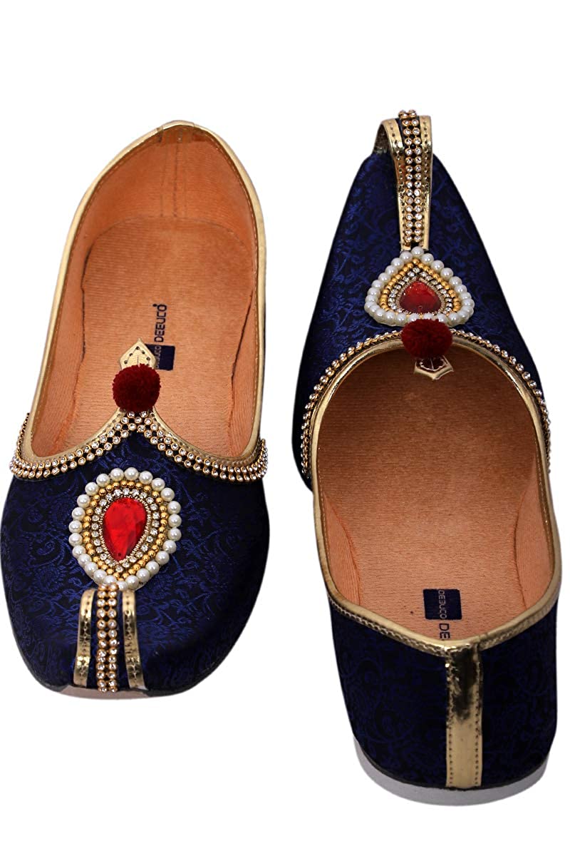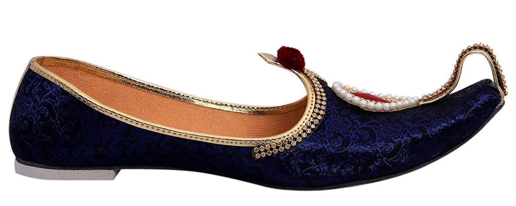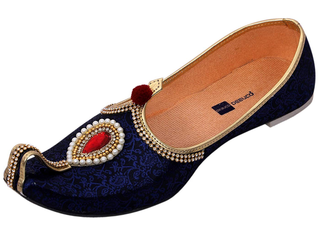 DEEUCO Men's Traditional Stone Studded Fabric Wedding and Sherwani Jutti,Mojari