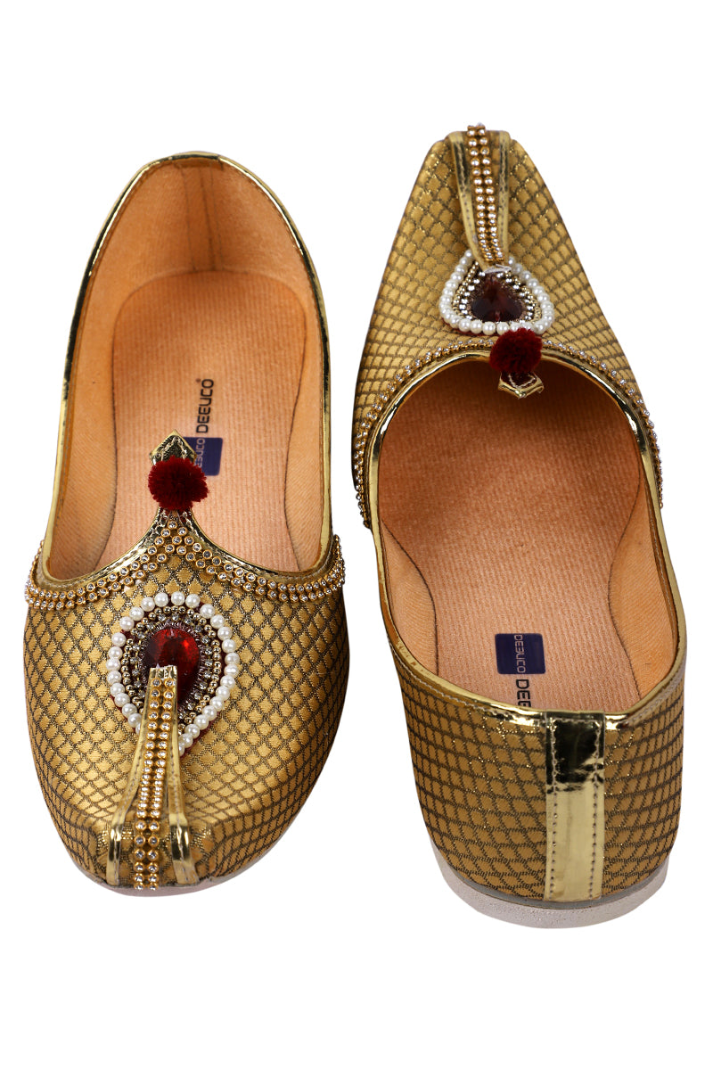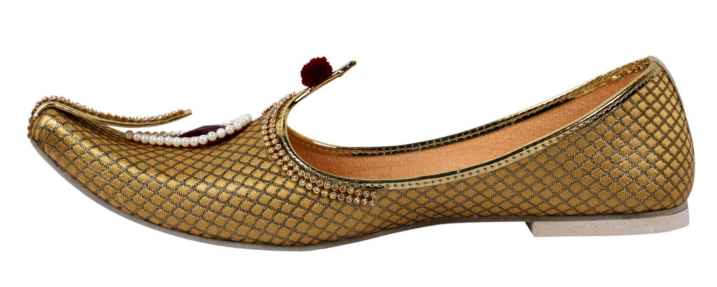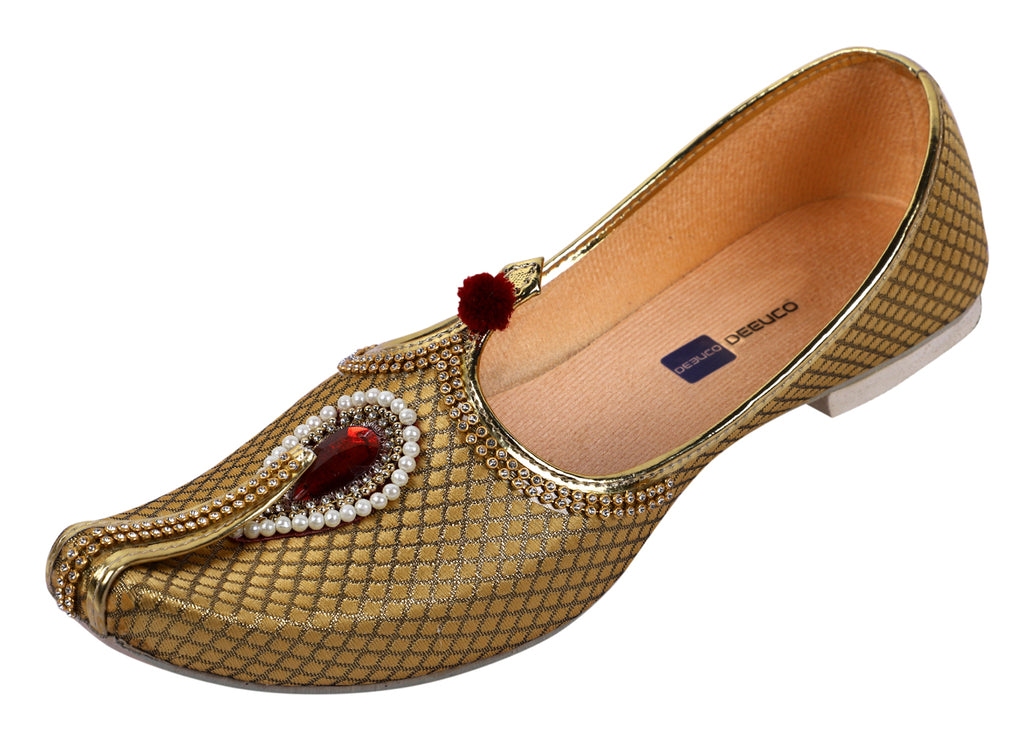 DEEUCO Men's Traditional Stone Studded Fabric Wedding and Sherwani Jutti,Mojari