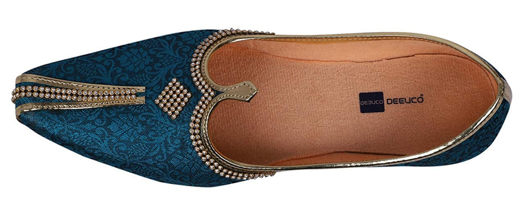 DEEUCO Men's Traditional Wedding and Sherwani Jutti/Mojari with Work(Blue)