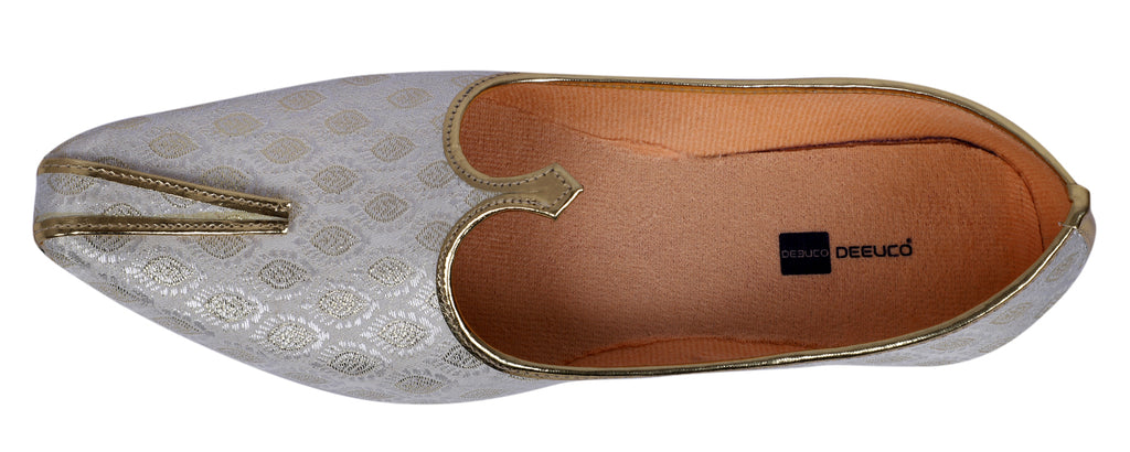 DEEUCO Men's Traditional White and Golden Wedding and Sherwani Jutti,Mojari