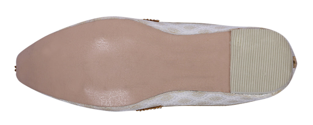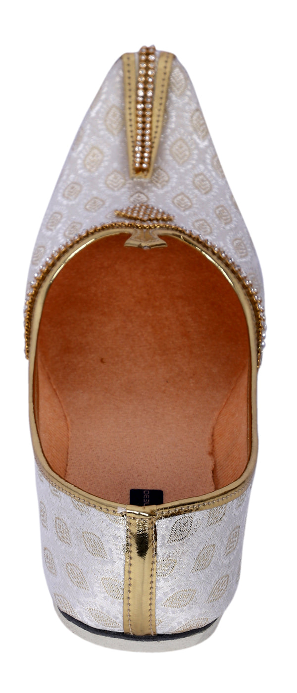 DEEUCO Men's Traditional White and Golden Wedding, Party and Sherwani Jutti,Mojari